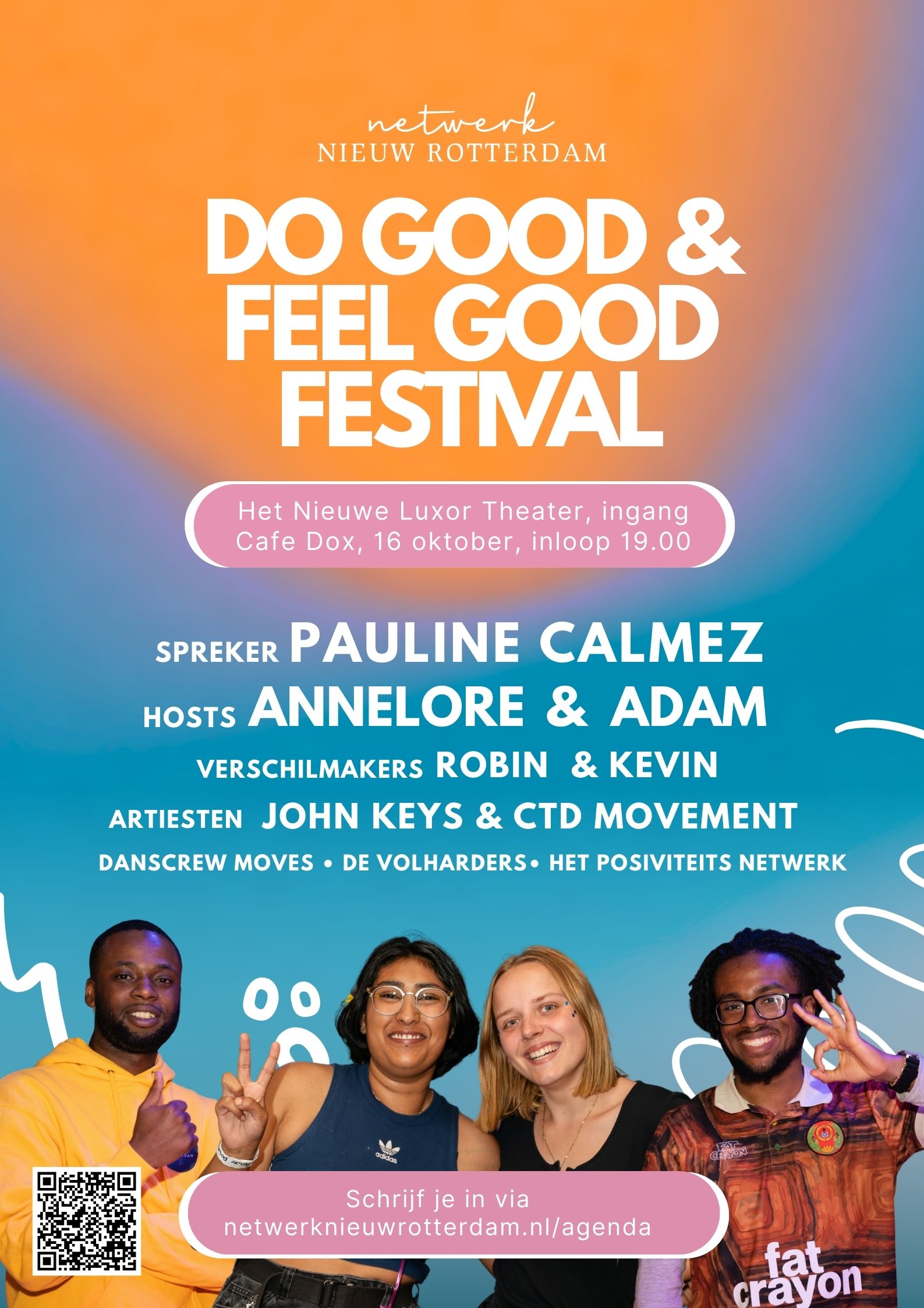 Ben je nieuw in Rotterdam en zou je wel nieuwe mensen willen ontmoeten? Kom naar het Do Good & Feel Good Festival in het Nieuwe Luxor Theater!