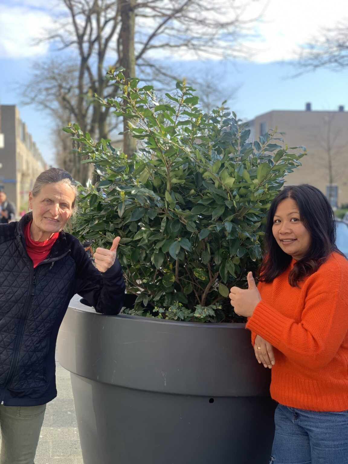 Zolang de fysieke huiskamer er nog niet is, zetten Lucia en Helga zich met buurtbewoners in voor kleinschalige verbeteringen in de straat. In de zomer maakten ze de straat schoon, plaatsten plantenbakken en hingen hangzakken vol sier- en kruidenplanten op. Deze acties brachten bewoners samen, vergroenden de straat en verhoogden de veiligheidsbeleving. Bovendien halen zulke initiatieven bewoners die vaak geïsoleerd zijn uit hun huis en brengen ze in contact met de gemeenschap, wat eenzaamheid kan verminderen.